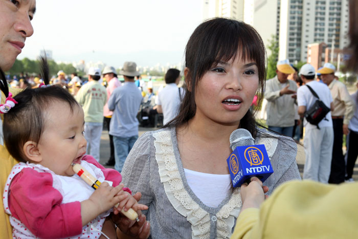 曾在大陆受过迫害,后经韩国政府与民众的营救才来到韩国的法轮功学员高成女