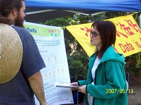 二零零七年五月十三日,以色列法轮功学员举办了一系列活动向人们介绍法轮功并揭露中共的迫害。