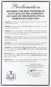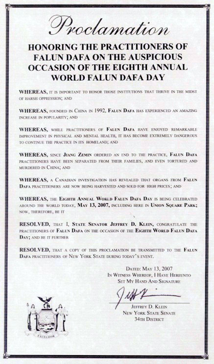 鉴于,今天,二零零七年五月十三日,世界各地在庆祝第八届世界法轮大法日,包括今天在纽约联合广场举行的庆祝活动;
