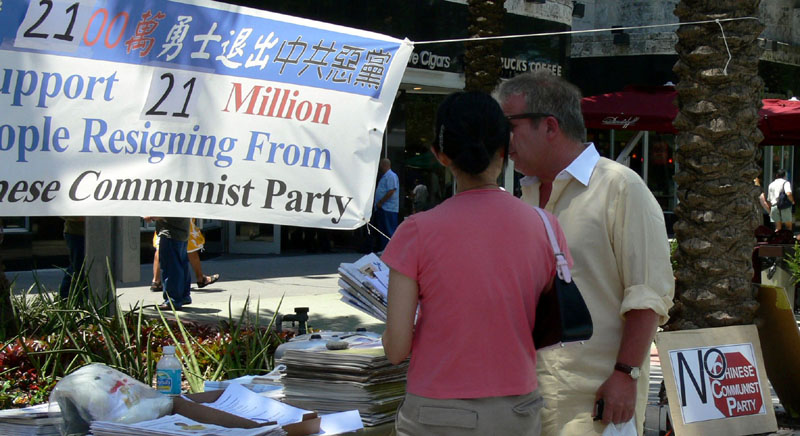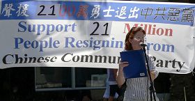《大纪元时报》代表李女士说,二零零四年十一月海外综合媒体大纪元新闻网发表系列社论——《九评共产党》,它系统的阐述了共产党的邪恶本质,极短时间内在海内外引起了强烈反响,并开始迅速传播,并由此引发了惊天动地、势不可挡的全球退出中共党、团、队——三退大潮。大量中国民众使用各种方式,将退党声明传至海外退党服务中心及大纪元网站,让中共恶党极度恐慌。如今,退党、退团、退队人数已达两千一百万,中共的根已被拔出来了,中共灭亡已是历史的必然,指日可待。在英文大纪元网站谴责中共的留言板上还可以看到海外民众的肺腑之言。英国的约瑟夫写道,“共产主义带给中国人民的只有灾难,世界人民应该联合起来共同努力让所有的共党国家都倒台,使人们看共产党就如同看待纳粹一样的厌恶。”