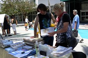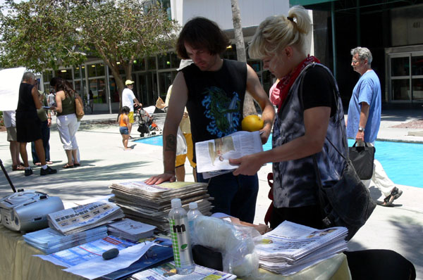 集会地点在迈阿密海滩市繁华的林肯路及华盛顿大街交汇处,会场上迎风招展的中英文横幅及富有见地的中英文演讲,引了大量当地居民及游客驻足观看。许多人索取资料,询问详情,声援支持。