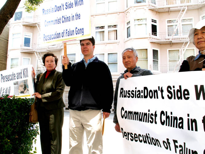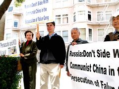 旧金山法轮功学员在俄国领馆前,正告俄国当局不要配合中共迫害法轮功