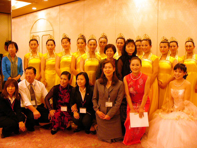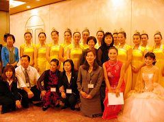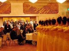 ![]() 演出结束后,很多观众纷纷离开自己的座位,争先恐后的与法轮功学员们合影留念 |