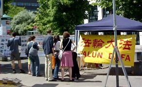 莱比锡的法轮功学员张震彤也来到了信息台前,用自己妻子王晓燕在中国监狱里受到的非人酷刑折磨的经历,感染和震惊了在场的每一个听众。人们纷纷在呼吁营救王晓燕的征签表格上郑重的签下了自己的名字,以示支援!