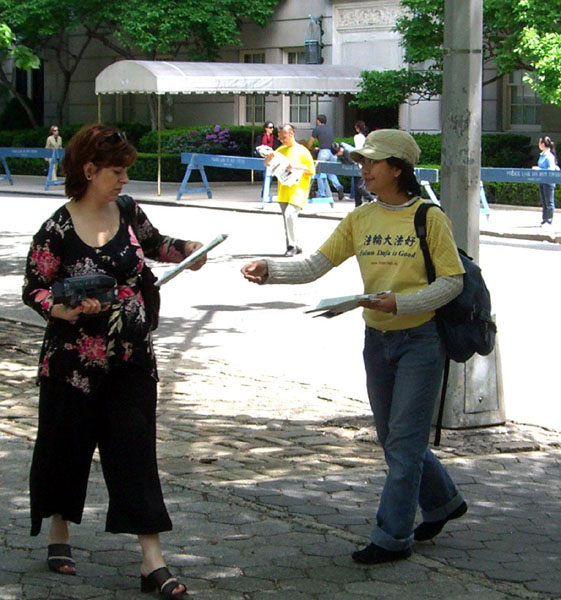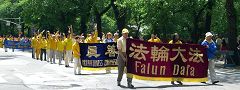 法轮功队伍以天国乐团开路,雄壮的乐曲震撼着人们的心灵;仙女队轻歌曼舞,展示着中国舞的韵味;炼功队伍演示着法轮功功法,舒展祥和;腰鼓队精神昂扬,令人振奋。两个小时的游行中,“法轮大法好”的歌声乐曲一直响彻五大道。人们微笑、鼓掌、挥手、竖大拇指、拍照、摄影,为法轮功喝彩、欢呼。