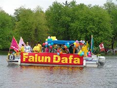 加郁金香花船游行 法轮功学员展风姿(图)