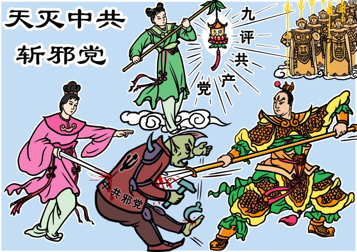 漫画:天灭中共;退党保命;全国人民看新唐人电视
