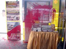 香港法轮功学员在著名旅游热点开设的一个真相展示点,二零零七年五月二十四日下午遭到两名凶徒暴力袭击破坏。