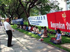 印尼法轮功学员中使馆前声援退党二千二百万(图)