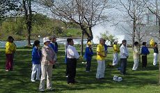 台湾法轮功学员借参加二零零七年加拿大法轮大法修炼心得交流会之机,于二零零七年五月二十一日在尼亚加拉瀑布,利用机会集体炼功,向游客介绍法轮大法、派发真相传单,希望让更多的世人了解法轮大法和其在中国大陆受迫害的真相。