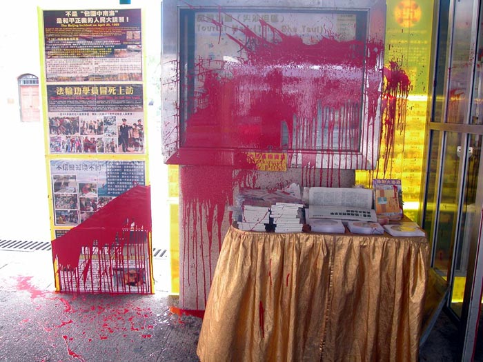 香港学员真相点遭凶徒袭击,被泼红油漆