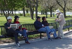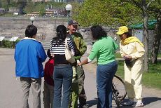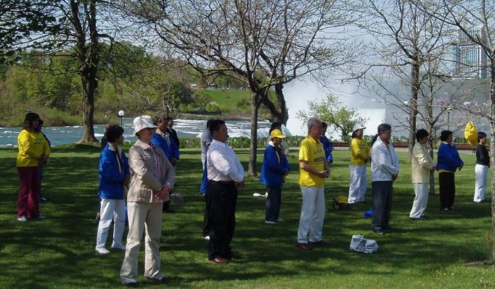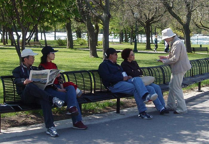 ![]() 法轮功学员向人们讲述修炼后的身心升华 |