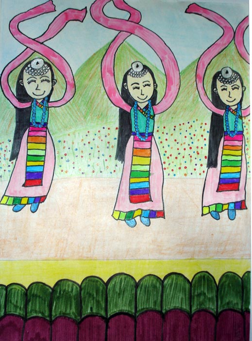 在学生的眼中,《迎春开花》这舞码,使用的手绢甩起来就象一个个的小太阳,将手绢的动感发挥的淋漓尽致,展现了春回大地、百花盛开,万物复苏的景象。而一条条的彩带化成《彩虹》节目,让他们惊奇的是男生跳彩带舞,强而有力的挥舞,有柔有刚,彩带控制自如,令人赞叹。