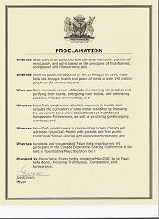 二零零七年五月二十六日,加拿大不列颠哥伦比亚省素克市市长宣布二零零七年五月为“法轮大法月”。