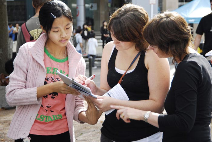 整个活动中,人们都静静的倾听着真相,不断有人在征签本上签下了他们支持的名字。