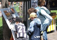![]() 一位母亲向自己的孩子讲解展板内容 |