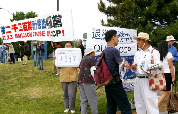 义工毛女士说,今天有不少老党员都退了。开始他们都认为出国这么多年了,早就脱离共产党了,不需要退了。我就对他们说:“您入党的时候不是发过誓吗?不是说过要为它奋斗终生的吗?如果天要灭它时,而您又没声明退出,那不是跟着它倒霉了?那多可惜呀!”他们声明退党、退团及退队后,都会索取一些资料,高兴的向我道谢后离去。