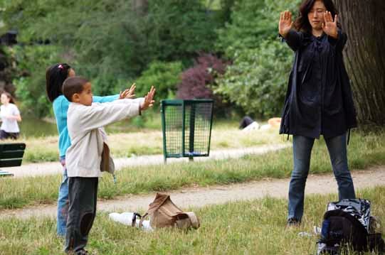 【明慧网二零零七年六月二十八日】二零零七年六月二十四是法国一年一度的气功日。在巴黎凡赛恩公园,形形色色的气功汇集到一起,以盈利的形式向公众开放。法轮大法是非盈利的,义务教功,不收取任何形式的报酬。所以几位法轮功学员没有参加气功日而是在活动场地的外围炼功和发真相资料。过程中很多慕气功之名而来的法国人看到这祥和的功法,都很好奇的过来询问,有的直接学功并和学员们一起炼了起来。