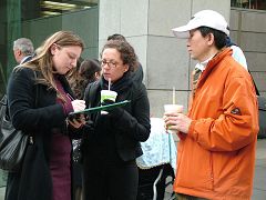![]() APEC部长会议期间法轮功学员举行新闻发布会,图为学员在向澳洲民众讲真相 |