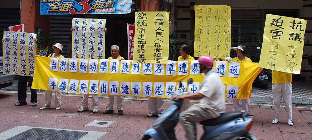 法轮功学员、中正大学艾昌瑞教授表示:“从六月下旬到七月一日,至少有五百位持合法签证入境香港的法轮功学员被非法暴力遣返,他们都是合法善良的人民,我们希望陈总统能知道这件事情,出面谴责中共操控香港政府。”