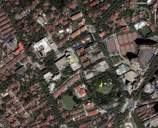 上海市康平路151号隔壁,据说是大魔头的老巢,经实地勘测,门口有4个警卫,应该属实,右下角为衡山公园。附近是徐家汇绿地。