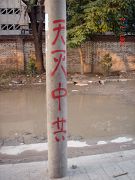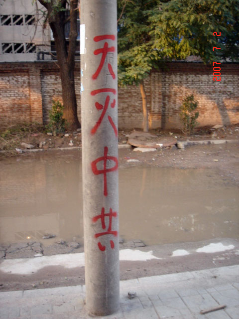 ![]() 石家庄某小区附近出现的灭党标语 | ![]() 石家庄某小区附近的墙上出现的灭党标语 |