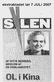 【明慧网二零零七年七月十三日】继六月二十六日丹麦最大的日报《日德兰邮报》(Jyllands-Posten)发表了一篇名为《丹麦两党要求:王子远离北京奥运》的文章后,在七月七日的丹麦最大体育报纸《号外》(Ekstrabladet)上又刊登了丹麦驻欧盟的议员吉特•斯布亚(Gitte Seeberg)的一篇题为《奥运在中国?》的文章。