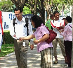 一位参加声援活动的法轮功学员表示:我们真心希望中使馆人员能够明白真相,找正自己的位置,尽快摆脱中共邪灵,不要再做出象施压印尼政府、干扰法轮功学员参加雅加达市庆游行活动这样过份的事情了。追随中共对他们本人的未来真的不好。