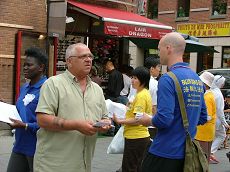 竹学叶说,“法轮功学员一直坚持街头讲真相,很长一段时间以来,每周写一封给社区的信,挨家送去,一个一个社区拜访,跟社团讲法轮功是怎么回事,揭露中共的迫害。时间久了人们知道了真相是怎么回事了,社区对法轮功的态度越来越好了,以前社区人躲着法轮功学员走,跟他们说话他们不敢看我们,甚至有些人看到法轮功学员讲真相很愤怒,甚至当面撕掉材料。现在不同了,拿资料、看展板,主动拿《九评共产党》的人愈来愈多了,有些社团的人公开讲法轮功好。但是也有些人受中共收买,出于保全个人利益,惧怕中共,现在社团还是受中共的操控,可是社团的人私下对法轮功学员的态度都非常友善了,对法轮功学员非常佩服。”