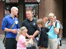 来自佛罗里达的四位游人,认真听了真相后,询问法轮功网站,并说要将法轮功被迫害的事情放到佛罗里达的一个非常重要的网站上,把法轮功的网站也放上去,让更多的人知道这些事情。