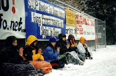 ![]() 张秀莲(左一)坐在雪地静坐抗议 |