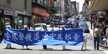 旧金山湾区的各界人士于七月十四日在旧金山市主要街道举行游行,声援中国大陆二千三百万人退出中共。