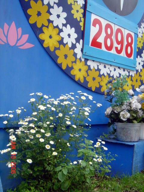 二零零二年春天,TAIK从自家院子采来一些小白花,插在瓶子里,放在大花圈下面,表达他对那些为了追求“真、善、忍”真理被迫害致死的同修们的哀思。他随手将小白花上的籽撒在墙根;到了秋天,却发现展板下长出一些小白花,他没想到它们竟然在这里发芽、生根、开花了。