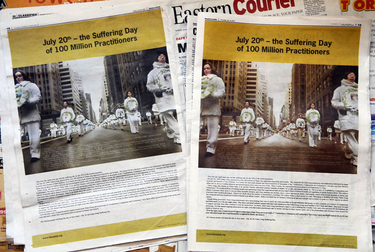 ![]() 十家英文报纸整版刊载《“七•二零”—— 一亿修炼人的蒙难日》,有四十万以上的市民家里接收到 |