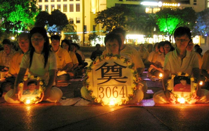 晚上,法轮功学员于八打灵再也公园举行烛光哀悼会,静坐哀悼被中共迫害致死的中国大陆同修。