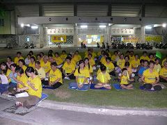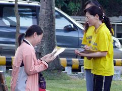 ![]() 台东法轮功学员集体炼功,展示法轮功五套功法 |