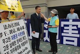 韩国法轮大法学会发表声明说:中国政府必须立即停止迫害法轮功,释放被监禁的法轮功学员,立即法办迫害法轮功的元凶——江泽民、罗干、刘京、周永康、李岚清、曾庆红、薄熙来等恶人。