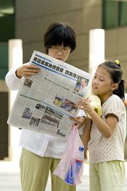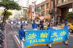 一位台湾某大报的记者刚好家住在永和,他出门碰上了法轮功游行队伍,向学员了解今天的游行主题,并说他知道这场惨绝人寰的迫害,他会将法轮功事件贴在自己的部落格里给网路的朋友观看,让他们了解真相。