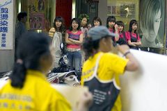 一位开茶叶店的老板夫妻俩人站在店门口认真观看,他时常关注法轮功的新闻。他说,知道法轮功在中国遭中共迫害,那里没有宗教与人权的自由。中共黑手这次又伸入香港,将四百八十四位台湾法轮功学员用暴力遣返。最后,他支持要尽快制止中共的迫害。