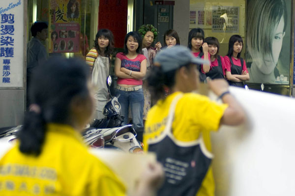 法轮功首次在永和游行,许多民众好奇的驻足观看