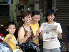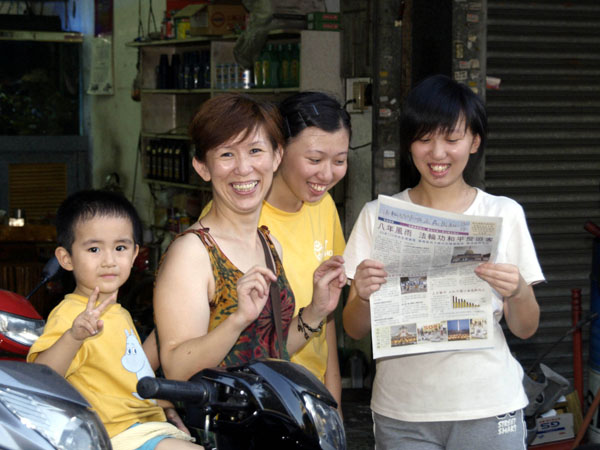 一位来自三重的吴小姐表示,他们一家十四口都修炼法轮功,其中最小的今年只有五岁。他们全家都参与了今天的游行。吴小姐说,她的公公是家里面最早开始修炼的,原本有忧郁症、摄护腺炎、长期失眠等五种疾病,在修炼法轮功一年半之后,各种毛病全都不翼而飞,家中成员对此感到好奇,纷纷加入修炼的行列。