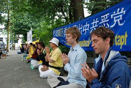 荷兰法轮功学员中使馆前抗议八年迫害(图)