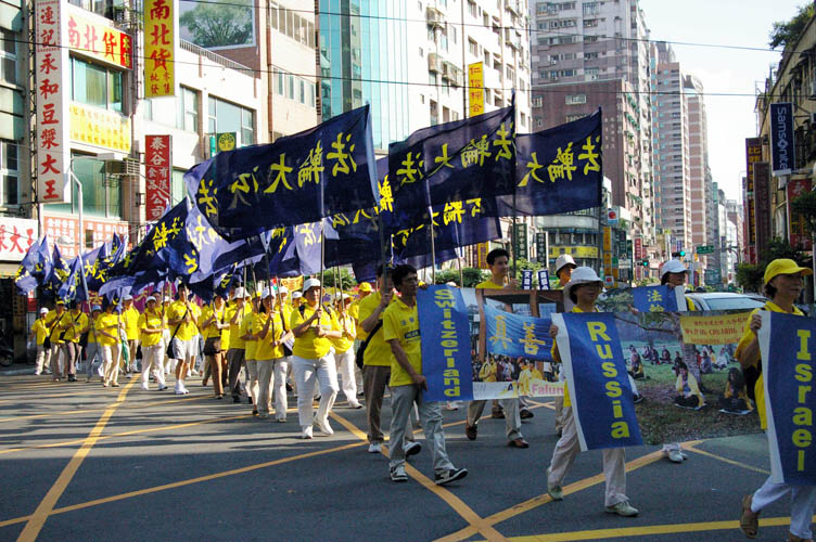 ![]() 台湾天国乐团首次参加「七•二零」反迫害游行活动,吸引许多民众观看 |