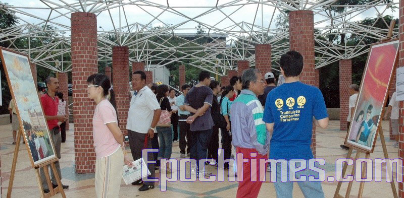 【明慧网二零零七年七月二十四日】“七•二零”之际,为呼吁终结中共迫害法轮功,马来西亚法轮功学员于二零零七年七月二十二日在吉隆坡的皇后花园举办了“真善忍画展”,让更多人知道中共迫害法轮功的真相,进而使这历经八年的残酷迫害得以终结。