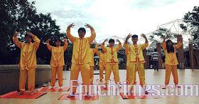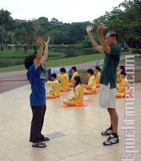 画展吸引了许多到公园里来晨运的民众观赏。一群法轮功学员穿着金灿灿的炼功服,随着祥和的炼功音乐,在展览中演示功法。其他学员并向民众派发资料,讲解中共迫害法轮功的真相。许多人因此而对法轮功有更深一层的认识,纷纷表示对这场迫害感到震惊及伤心,并希望迫害能尽早终结。当场学员们也同时征签呼吁制止中共活体摘取法轮功学员器官的非人道暴行,了解真相的民众踊跃签名。