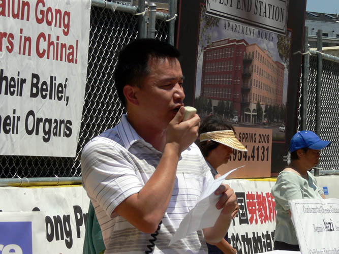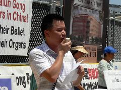 法轮功学员、电脑工程师史蒂夫•孙在集会讲演中介绍了法轮功如何给亿万人带来身心健康、道德回升,却遭中共与小人妒忌,中共当局动用所有国家机器对法轮功学员开始了长达八年的灭绝性迫害。孙先生说,近期,加拿大调查团对中共活摘法轮功学员人体器官的指控进行了独立调查,搜集到的三十三类证据显示,这一指控是确有其事的。中共在疯狂打压的同时,还利用宣传工具散布谎言,妖魔化法轮功,试图为迫害制造借口。