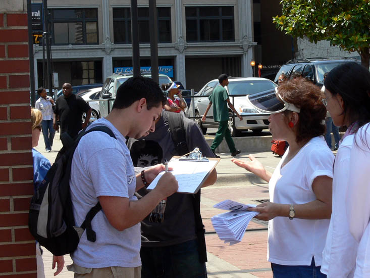 【明慧网二零零七年七月二十五日】二零零七年七月十七日中午,美国大达拉斯地区的法轮功学员在达拉斯市中心的“西终点”站(West End Station)举行集会,揭露中共对法轮功学员长达八年的疯狂迫害,见证法轮功学员反迫害的和平历程,呼吁各方民众认清中共本质,抛弃中共,选择光明未来。