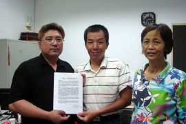 二零零七年七月十七日下午,台湾金门县法轮功学员针对被香港政府非法遣返事件拜访了蔡水游议员。