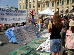 。人们感受到了这群修炼者给世界带来的正气,也看到了共产党的残暴,纷纷签名谴责中共暴行。越来越多的人站在了正义的一边,有的对法轮功学员说:“祝你们好运,我们正义的一边会越来越强大的。”有的说:“(中共)活体摘取人的器官,这不是人的行为。”