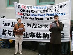集会过程中,很多过往民众驻足观看、倾听;了解真相后的很多民众签名支持真相调查团(CIPFG)赴大陆调查活摘法轮功学员事件的真相。
